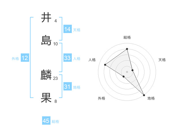 井島 麟果さんの総格は45画の4点!