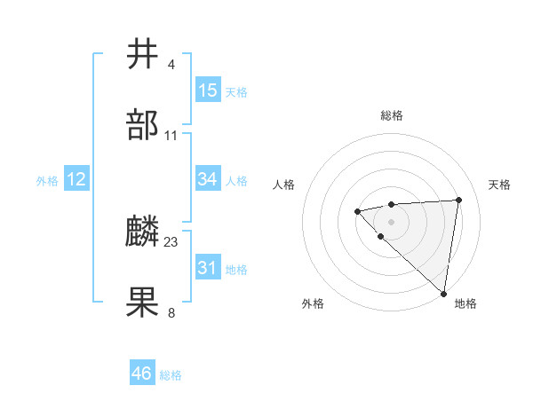 井部 麟果さんの総格は46画の1点!