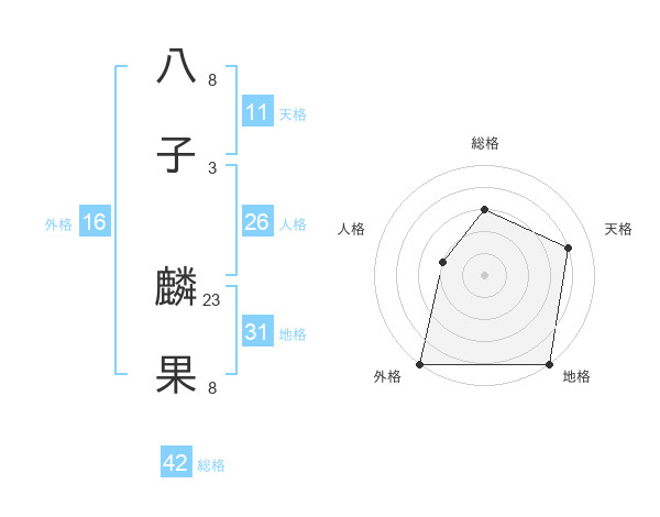 八子 麟果さんを姓名の画数から五運を鑑定