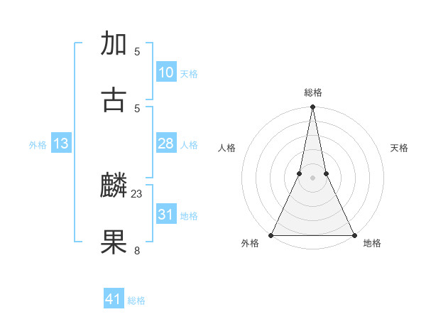 加古 麟果さんの総格は41画の5点!
