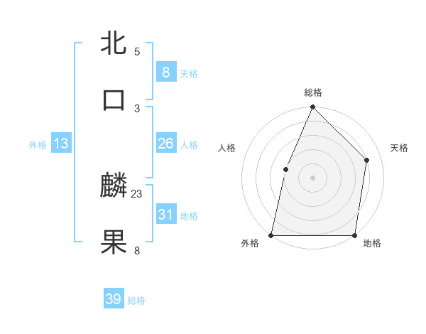 北口 麟果さんの外格は13画の5点!