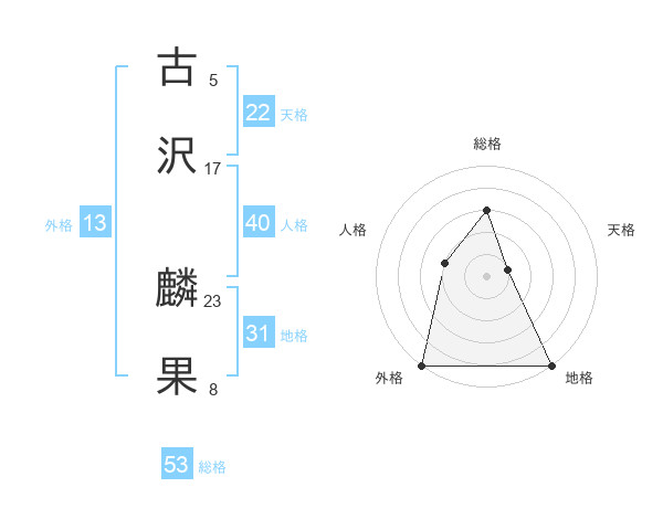 古沢 麟果さんを姓名の画数から五運を鑑定