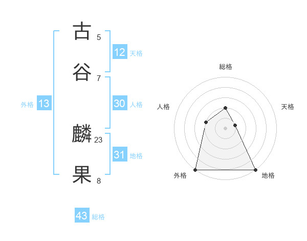 古谷 麟果さんを姓名の画数から五運を鑑定