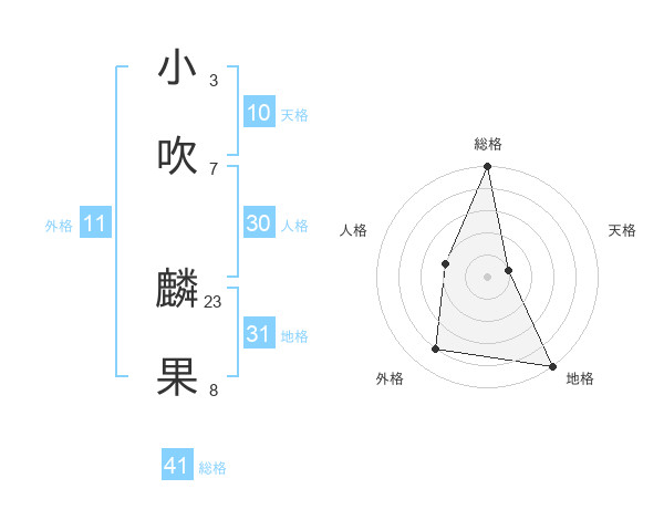 小吹 麟果さんを姓名の画数から五運を鑑定