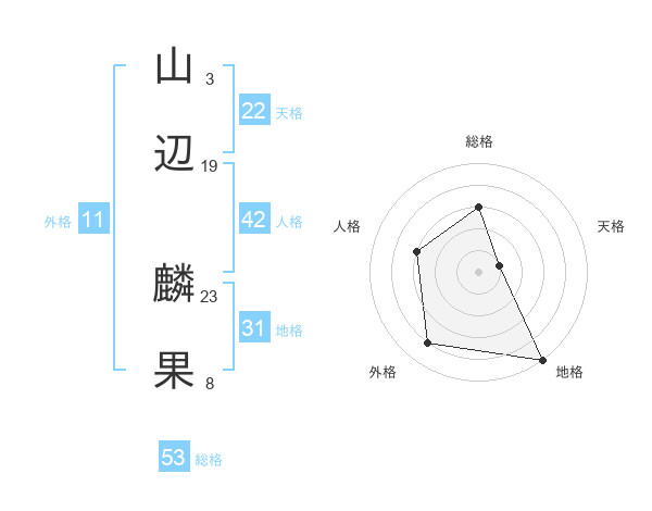山辺 麟果さんを姓名の画数から五運を鑑定