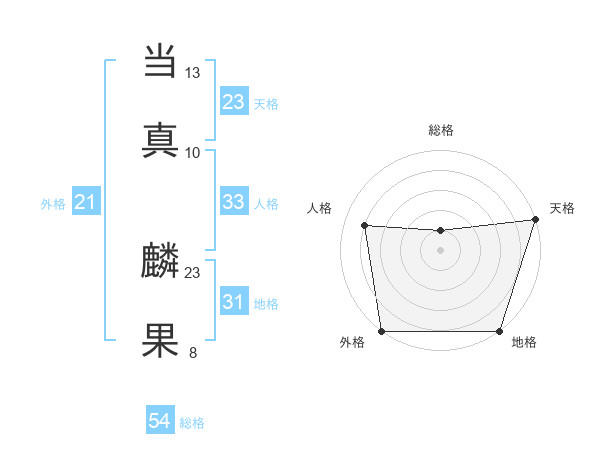 当真 麟果さんの総格は54画の1点!