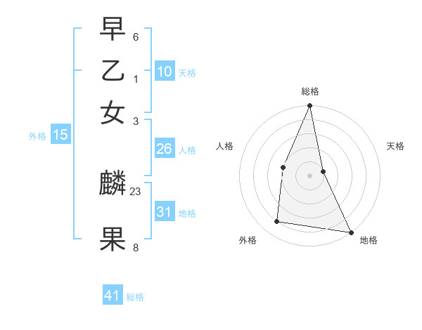 早乙女 麟果さんを姓名の画数から五運を鑑定