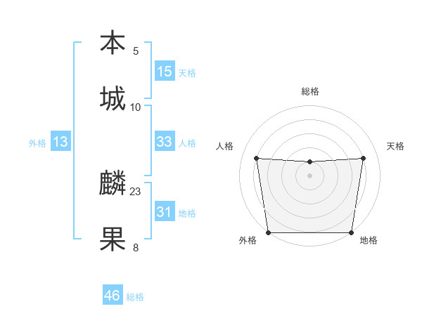 本城 麟果さんを姓名の画数から五運を鑑定