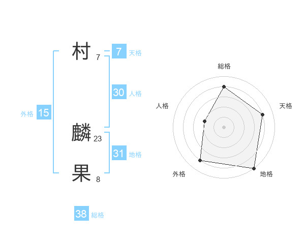 村 麟果さんの総格は38画の4点!