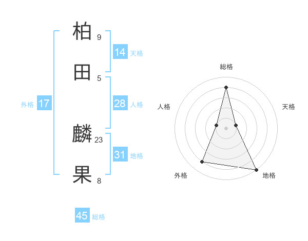 柏田 麟果さんの総格は45画の4点!