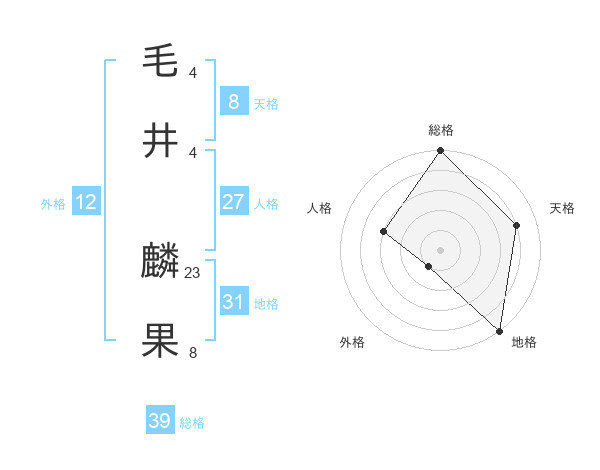 毛井 麟果さんを姓名の画数から五運を鑑定
