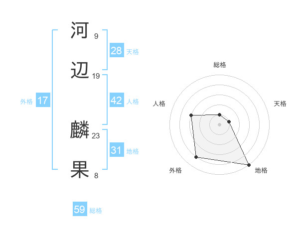 河辺 麟果さんの総格は59画の1点!