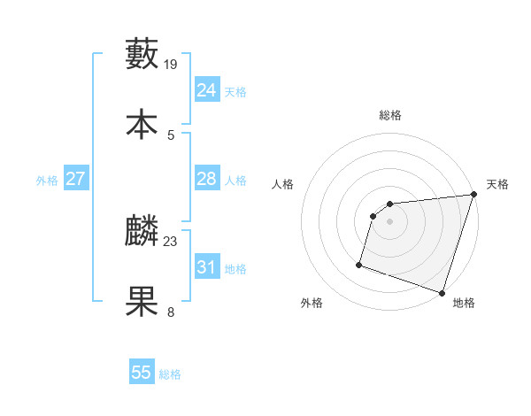 藪本 麟果さんを姓名の画数から五運を鑑定
