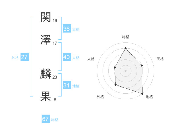 関澤 麟果さんの総格は67画の4点!