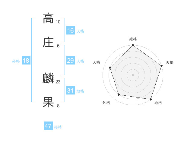 高庄 麟果さんの総格は47画の5点!