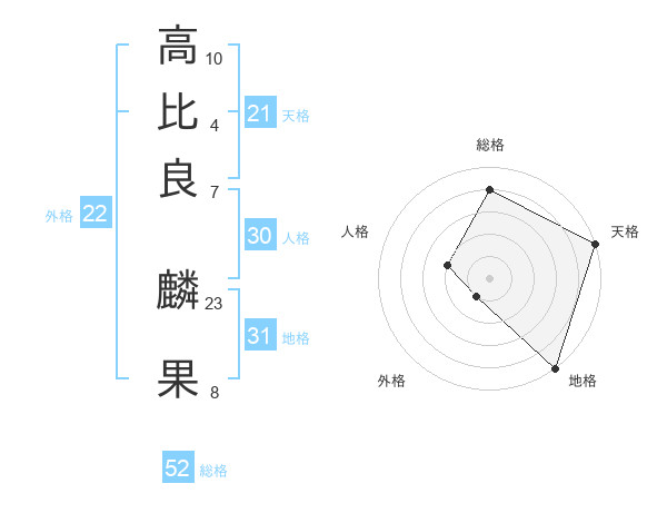 高比良 麟果さんを姓名の画数から五運を鑑定