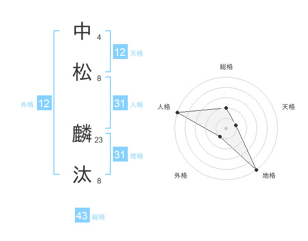 中松 麟汰さんを姓名の画数から五運を鑑定