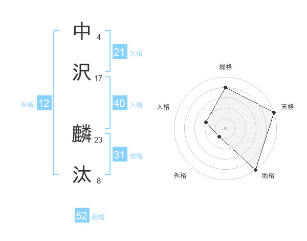 中沢 麟汰さんを姓名の画数から五運を鑑定