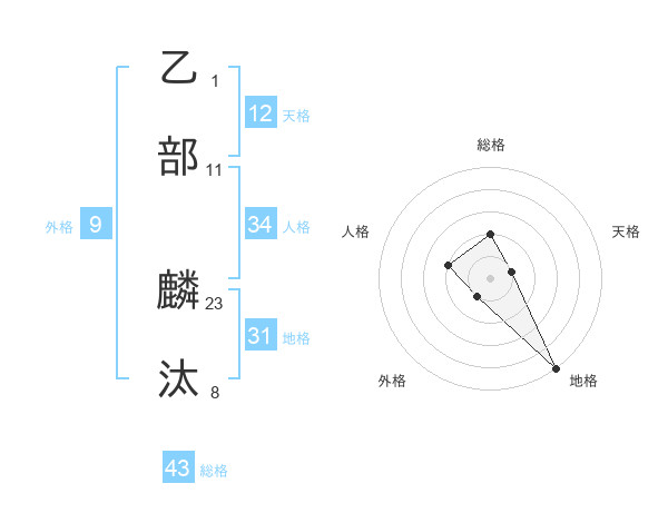 乙部 麟汰さんを姓名の画数から五運を鑑定