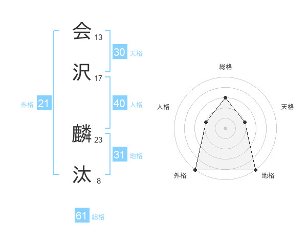 会沢 麟汰さんの外格は21画の5点!