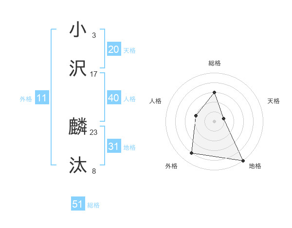 小沢 麟汰さんの総格は51画の3点!