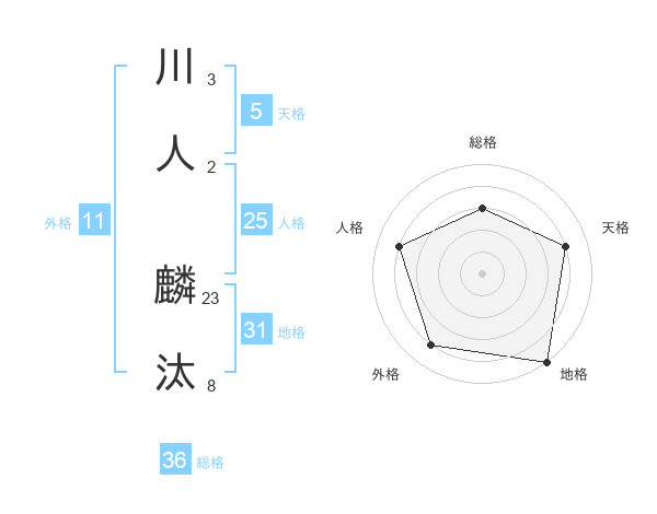 川人 麟汰さんを姓名の画数から五運を鑑定
