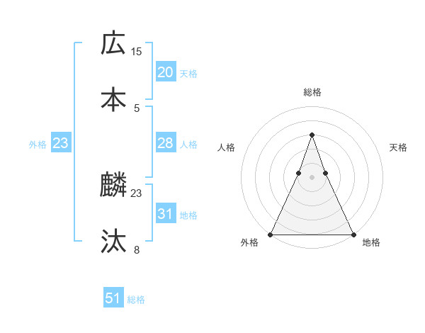 広本 麟汰さんを姓名の画数から五運を鑑定