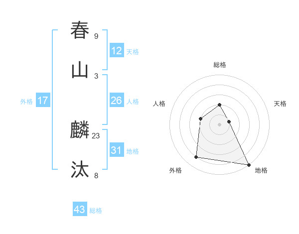 春山 麟汰さんの天格は12画の1点!