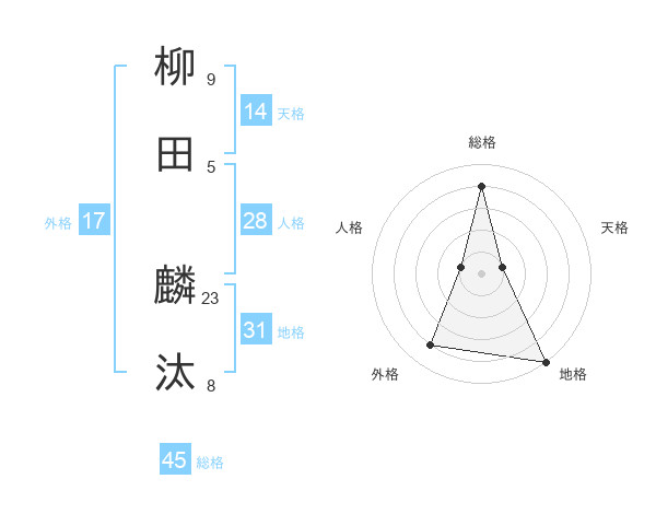 柳田 麟汰さんの総格は45画の4点!