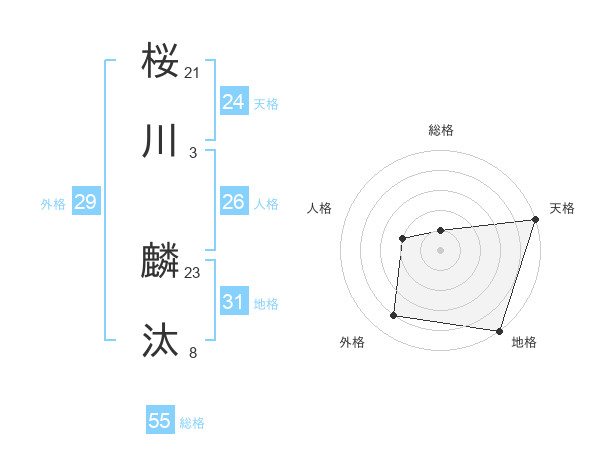 桜川 麟汰さんの天格は24画の5点!