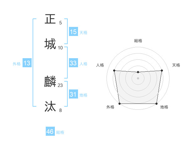 正城 麟汰さんを姓名の画数から五運を鑑定