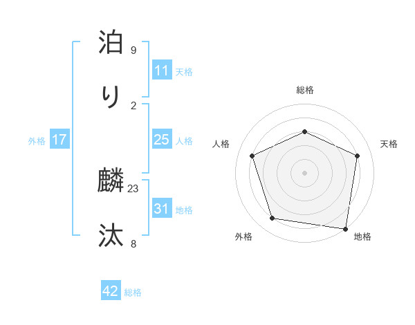 泊り 麟汰さんの地格は31画の5点!