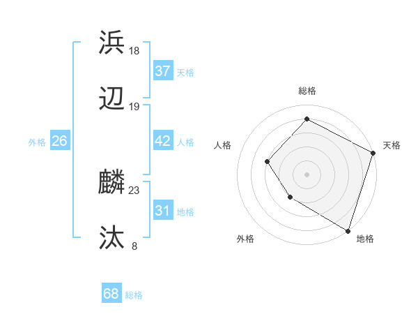 浜辺 麟汰さんの総格は68画の4点!