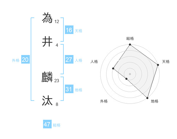 為井 麟汰さんを姓名の画数から五運を鑑定