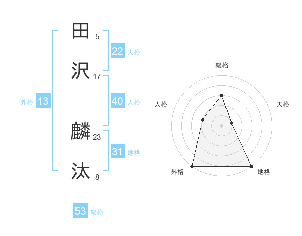 田沢 麟汰さんを姓名の画数から五運を鑑定