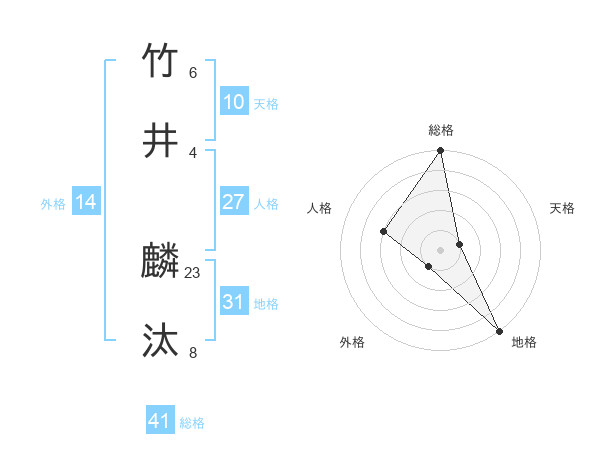竹井 麟汰さんを姓名の画数から五運を鑑定