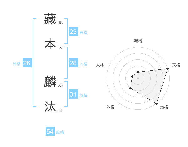 藏本 麟汰さんを姓名の画数から五運を鑑定
