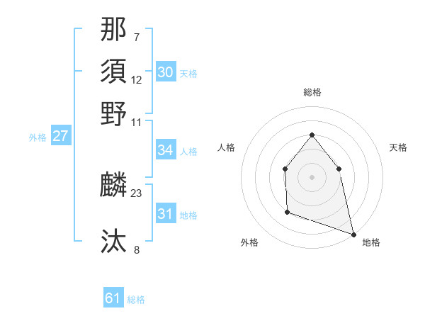 那須野 麟汰さんを姓名の画数から五運を鑑定