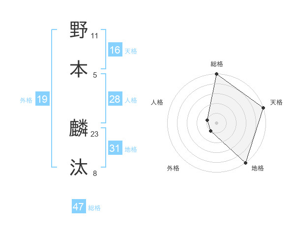 野本 麟汰さんの総格は47画の5点!