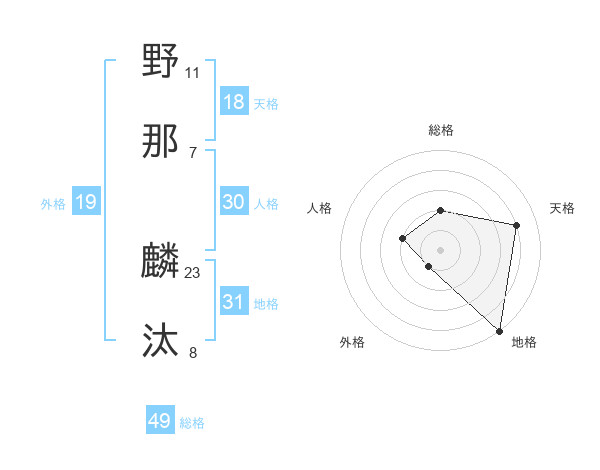 野那 麟汰さんの総格は49画の2点!