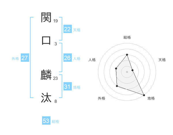 関口 麟汰さんの総格は53画の3点!
