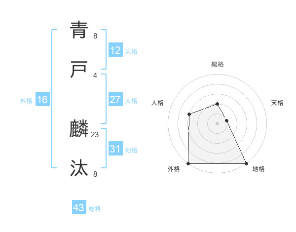 青戸 麟汰さんを姓名の画数から五運を鑑定