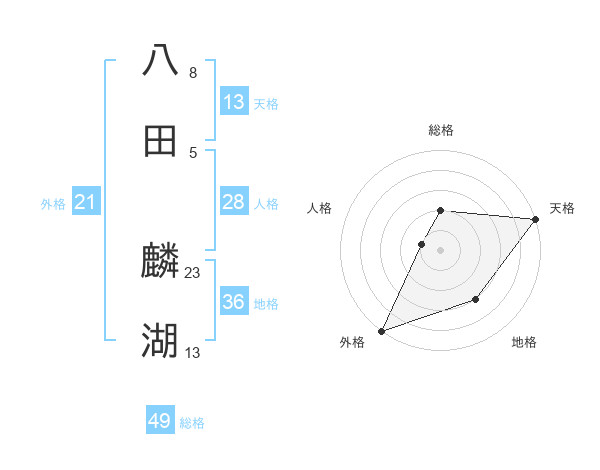 八田 麟湖さんの天格は13画の5点!
