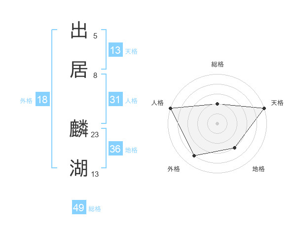 出居 麟湖さんの天格は13画の5点!
