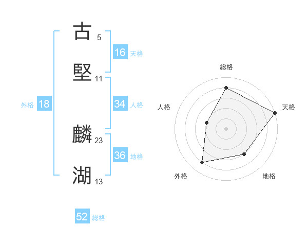 古堅 麟湖さんを姓名の画数から五運を鑑定