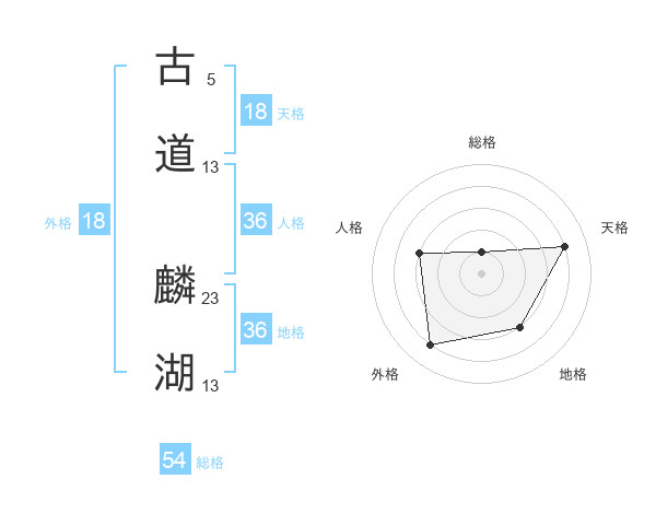 古道 麟湖さんの総格は54画の1点!