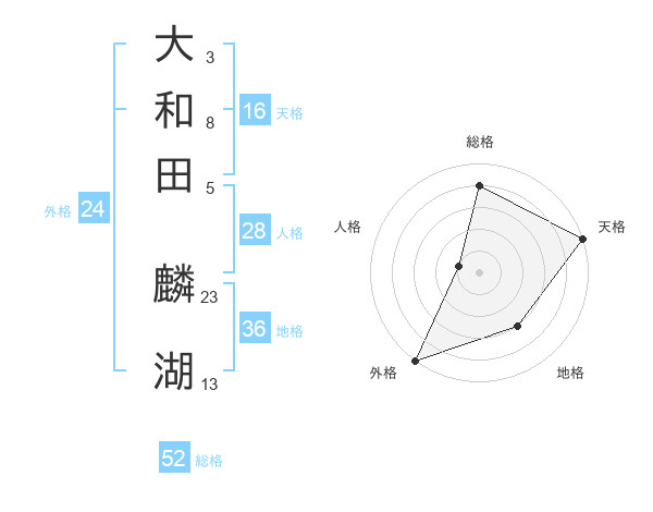 大和田 麟湖さんを姓名の画数から五運を鑑定