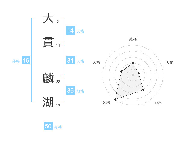 大貫 麟湖さんを姓名の画数から五運を鑑定