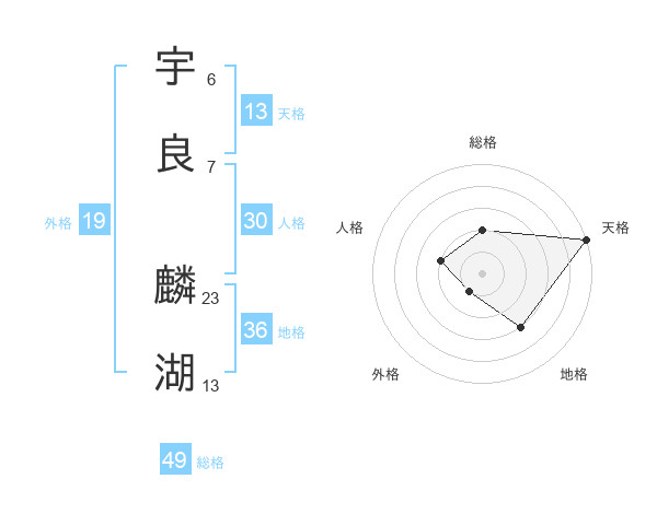 宇良 麟湖さんを姓名の画数から五運を鑑定