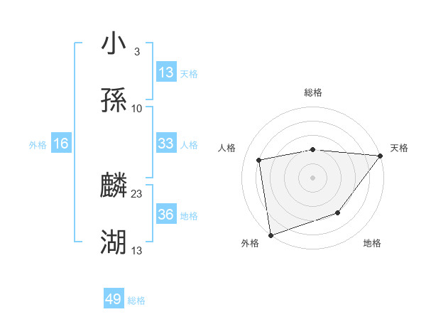 小孫 麟湖さんの総格は49画の2点!